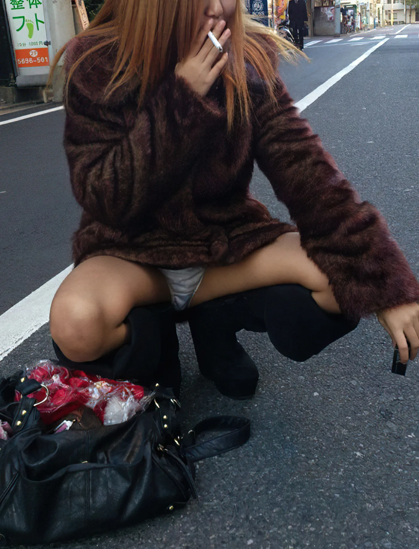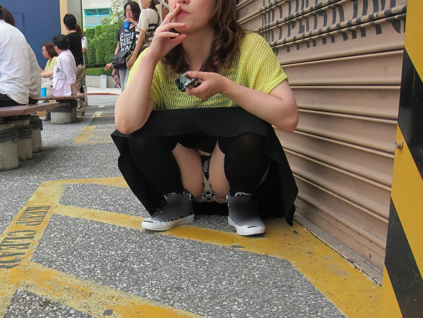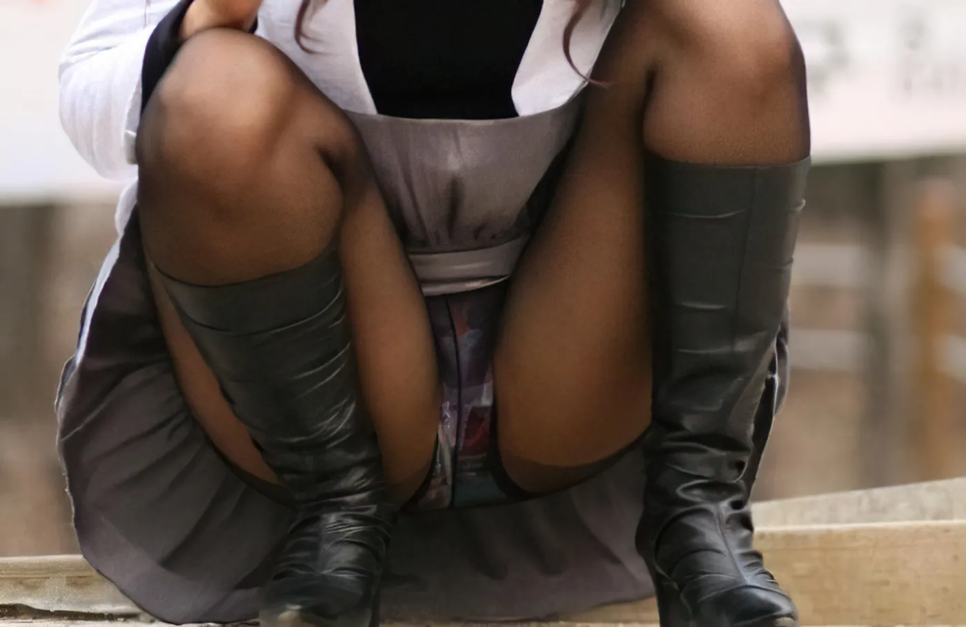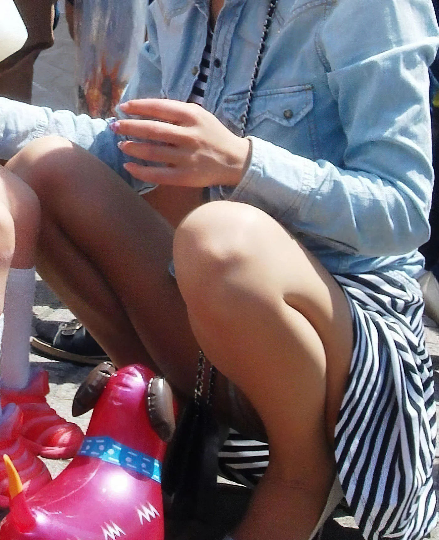 駐車場や駅前など街でとらえた日常風景パンチラ画像46枚。