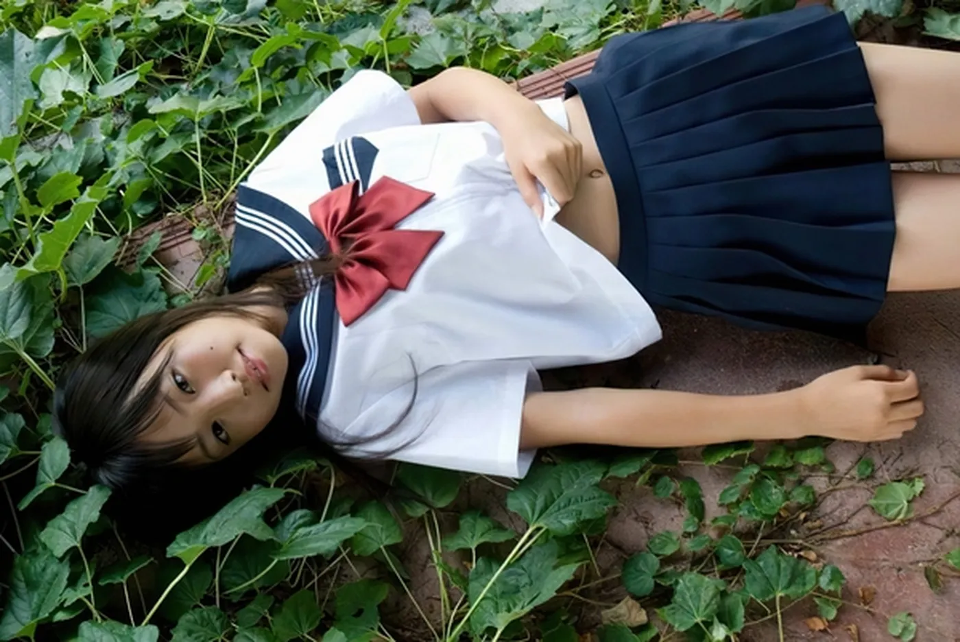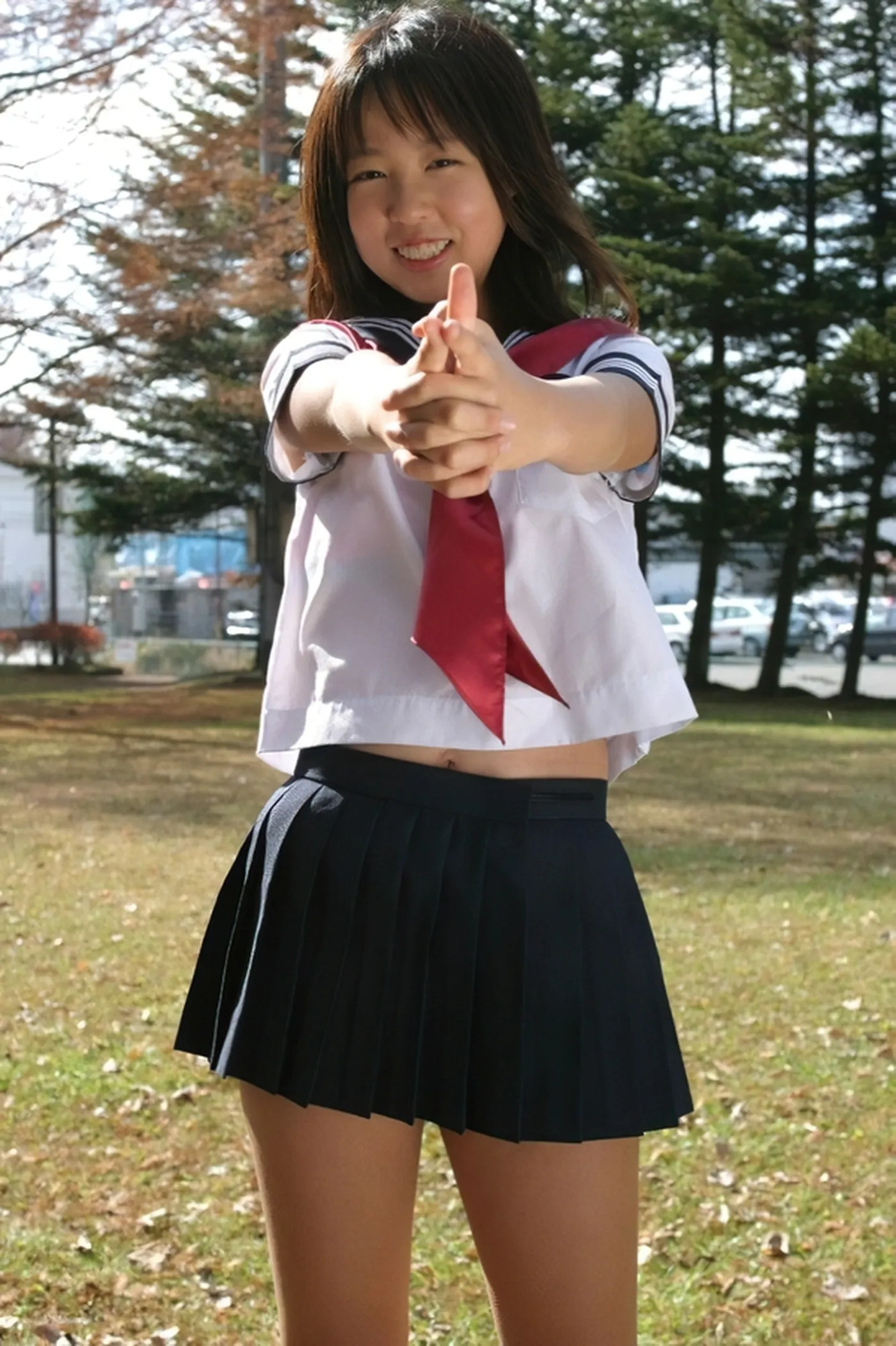 へそ出し・へそチラしてる制服JK エロ画像1枚目