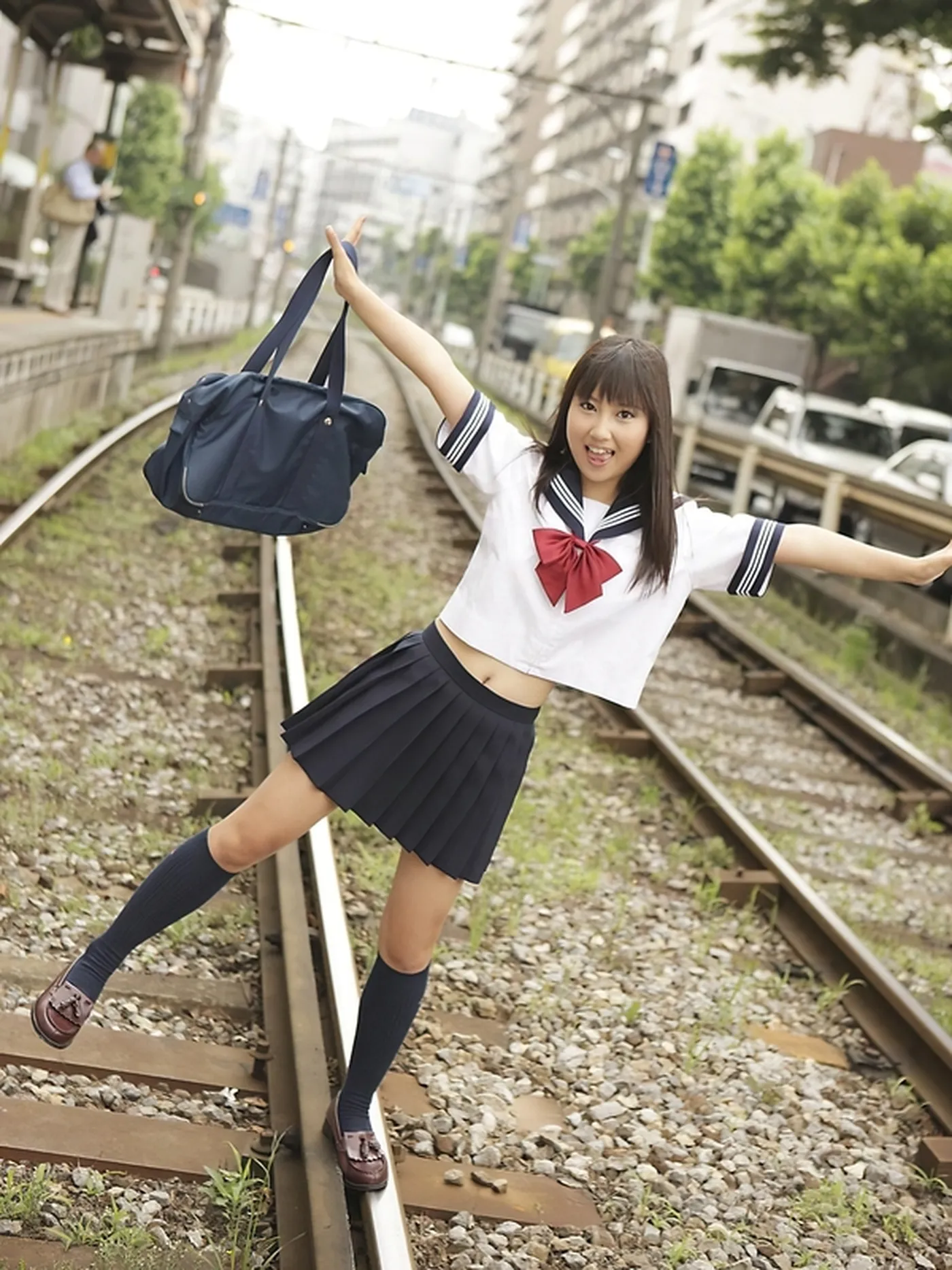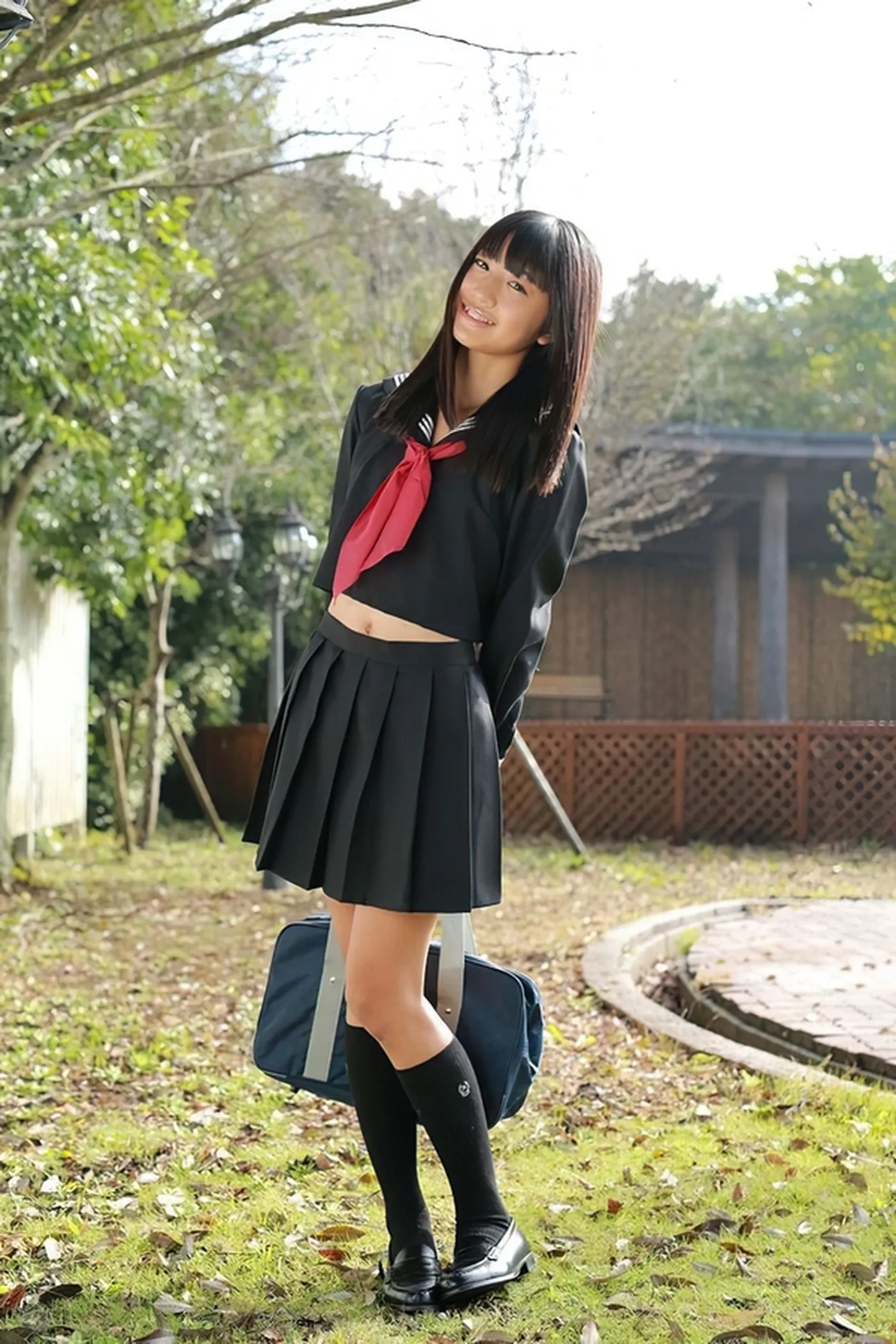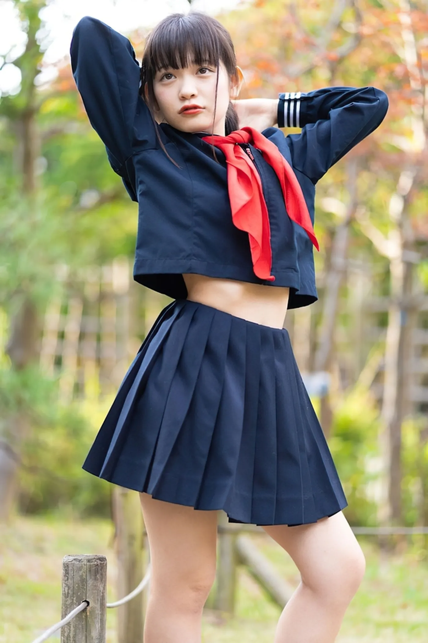 へそ出し・へそチラしてる制服JK エロ画像3枚目