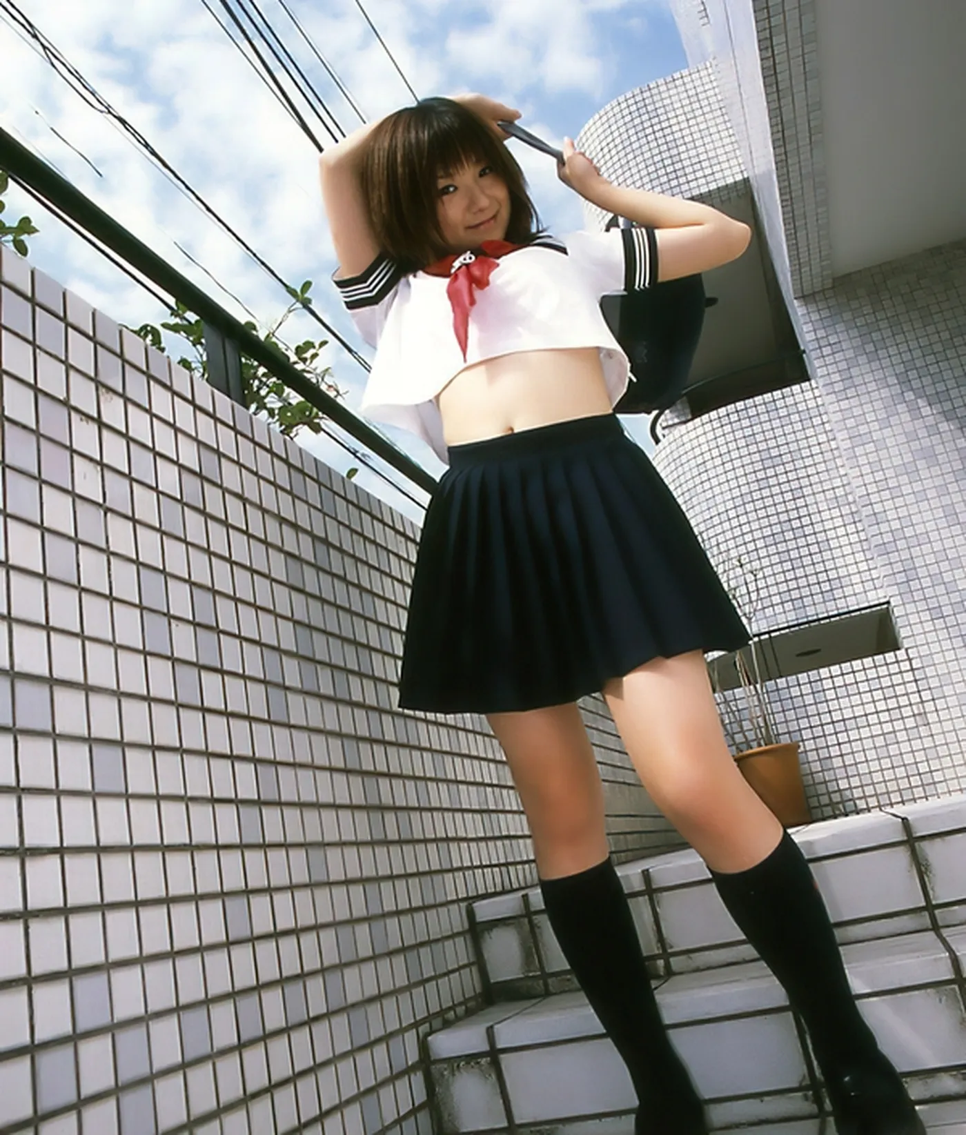 へそ出し・へそチラしてる制服JK エロ画像27枚目